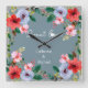 Reloj Cuadrado Duste Blue Silver Purpurina Floral acuarela