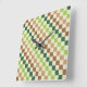Reloj Cuadrado Earthy rainbow diagonal checkerboard pattern