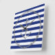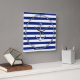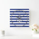 Un cromo de plata como diseño alto del ancla en una decoración de las rayas de azules marinos. Un regalo náutico moderno.