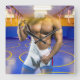 SlipperyJoe el hombre muscular bulge de seis paquetes de gimnasia instalación de entrenamiento deportivo blanco soltero cuerdas rojas azules colgando del techo jalando spandex lejos del cuerpo orgullo gay regalos LGBTQIA lucha artística mat amarillo círculos acolchados paredes alineadas la habitación luces fluorescentes arrojan un resplandor agudo