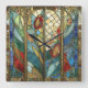 Reloj Cuadrado El Jefe Rojo de Vidrio Manchado atiende al amanece