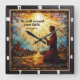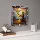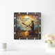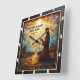 Un reloj de pared visualmente impresionante que muestra a una persona arrodillada en un camino de piedra, mirando hacia un horizonte brillante a través de una intrincada ventana de vidrieras que revela un cielo y un paisaje coloridos. El poderoso mensaje, "Él recompensará tu fe. - Los hebreos 11", está claramente integrado. Este artículo artísticamente único simboliza la profunda dedicación y la certeza de la recompensa divina, inspirando un profundo paseo de fe cada día.