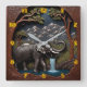 Reloj Cuadrado Elefante bebe agua en la montaña