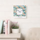Add botanical charm to any wall with this modern and elegant clock. Featuring a pattern of leaves in aqua, teal, faux gold and soft pink, the clock makes an ideal gift for nature lovers. Sure to be a highlight in the room with its sleek contemporary design, the clock can be personalized with a name for the finishing touch.