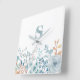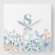 Reloj Cuadrado Elegante Monograma Floral Azul