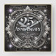 Esta sofisticada tarjeta del '25º Aniversario' captura la esencia de la elegancia. Contra un elegante fondo negro, presenta un impresionante marco circular con tema plateado adornado con detalles metálicos intrincados y acentos brillantes. La frase '25º Aniversario' está diseñada con una tipografía negrita y ornamentada, resaltada con delicadas chispas plateadas y toques luminosos. Los sutiles florituras de cintas plateadas, confeti brillante y estrellas radiantes crean un ambiente festivo y lujoso. Perfecta para conmemorar 25 años de amor, recuerdos y logros compartidos.