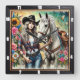 Reloj Cuadrado Elegante Vaquera Posando Con Hermoso Caballo Blanc
