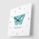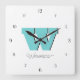 Reloj Cuadrado Elegantes números negros y monograma Verde azulado