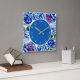 Reloj Cuadrado Elegantes Rosas Azules Decoración floral