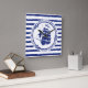 Emblema náutico azul con el velero en un © y un ® rayados Bigstock® del fondo el | - todos los derechos reservados.