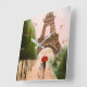 Torre Eiffel - París Francia, y Amantes bajo el paraguas rojo - arte de pintura acrílica "En la Torre Eiffel" y diseñado con marcas de hora y minuto en cualquier Zazzle Wall Clocks. #WallClocks #Clock #EiffelTower