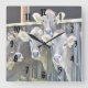 El reloj no se puede colgar en la pared porque tiene un defecto en la parte trasera.