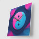 Equilibrio Geométrico: Patrón Yin Yang vibrante. Un diseño gráfico elegante con una interpretación única del símbolo yin yang en azul neón y rosa, que representa equilibrio y dualidad.
