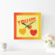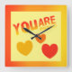 Personalizable Es un reloj de pared asombroso que usa colores de gradiente rojo, Naranja y amarillo con corazones de color coincidentes.