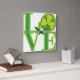 Diseño Green Love con Shamrock. Una adición perfecta a cualquier casa de temática irlandesa. Siempre hay tiempo para el amor y el brindis con este constante recordatorio de suerte y romance.