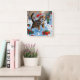 Reloj Cuadrado Escena de nieve festiva de Navidad con gato de Ben