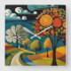 Reloj de pared de la escena campestre. colores vivos en bonito. ¡El arte popular es divertido!
