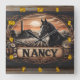 Reloj Cuadrado Escenario de caballos y granjas con placa de ident