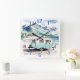 Reloj Cuadrado Escenario de playa de Caravana de Camping Retro