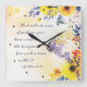 El reloj de pared de las escrituras inspiradoras representa un hermoso diseño floral único con flores y hojas amarillas, naranjas, moradas y azules. Presenta la Biblia Verse Ester 4:14, "¿Y quién sabe si tal vez has venido al reino por un tiempo como este?"