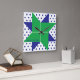 Un patrón de bloques de tejido en colores verde, azul y blanco presenta un molino central. Una delgada línea blanca se intersecta en el centro del diseño para marcar cada cuarto de hora. Este diseño sólo es adecuado para los relojes cuadrados.