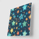 Estrellas brillantes amarillas, rojas y azules en el diseño de patrones de fondo azul.