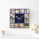 Reloj Cuadrado Familia 12 fotos Collage Madera azul oscura
