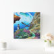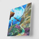 Faro encaramado en el borde de un acantilado sobre el océano en tonos azules de oro verde y violeta AI Generated Art por minx267