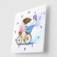 Reloj Cuadrado Feliz Chica En Bicicleta - Románticos Corazones De