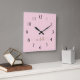 Reloj de pared cuadrado personalizado con nombre de monograma rosa con estilo minimalista y femenino. Estos diseños presentan su primer nombre en una bonita tipografía de letra a mano con cola de floritura en color dorado sobre un fondo de color rosa bebé claro o rosa intenso. Fácil de personalizar. Un regalo femenino y elegante para la inauguración de la casa, también para cumpleaños, despedida de soltera, día de la madre, boda, fiesta de cumpleaños de 16 años y baby shower, graduación y es para la chica que ama cosas únicas y elegantes con brillo.