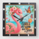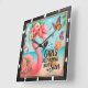 Este vibrante reloj cuadrado de pared luce un alegre flamenco rosa adornado con flores tropicales, y disfruta de una soleada escena playera con mariposas floridas. El lúgubre texto "CHICAS JUST WANNA Have Sun" y una refrescante bebida completan este fantástico diseño, convirtiéndolo en un accesorio perfecto y divertido para cualquier habitación.
