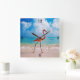 Este reloj cuadrado de pared se muestra con una foto impresa de un hermoso flamingo caminando por la playa. Personalizar este artículo o compra tal cual. Imagen de archivo
