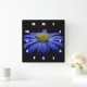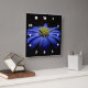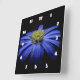 Reloj Cuadrado Flor de margarita azul Gerbera en un fondo negro