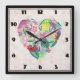 Reloj Cuadrado Floral Heart Illustration in Pink and Green