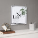 This wall clock has a simple design that packs a wallop. The circle of numbers is small and unobtrusive so the "life" quote takes center stage. The quote reads "Life is not about waiting for the storm to pass, it's about learning to dance in the rain. Which seems to be a great bit of advice in today's world. The top corner has a printed image of a bunch of hand painted violets. The white violets on the white background make a subtle eye-catching statement. The simple design makes it a perfect fit for any room in your home.