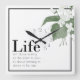 Reloj Cuadrado Floral Violets White on White Life Quote