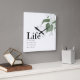 This wall clock has a simple design that packs a wallop. The circle of numbers is small and unobtrusive so the "life" quote takes center stage. The quote reads "Life is not about waiting for the storm to pass, it's about learning to dance in the rain. Which seems to be a great bit of advice in today's world. The top corner has a printed image of a bunch of hand painted violets. The white violets on the white background make a subtle eye-catching statement. The simple design makes it a perfect fit for any room in your home.