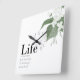 Reloj Cuadrado Floral Violets White on White Life Quote