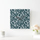 Reloj Cuadrado Flores blancas negras retro Cinta de pared