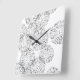 Reloj Cuadrado Flores de primavera abstractas en blanco y negro