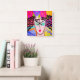 ¡Mi pintura abstracta colorida de una mujer con las flores en su pelo hace este reloj de pared precioso un trabajo enrrollado de arte decorativo!