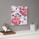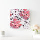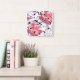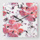 Reloj Cuadrado Flores rojas rosadas sobre blanco.