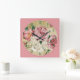 Este es un reloj de pared de flores rosas y blancas muy lindo