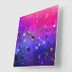 Resumen de fondo rosa azul con puntos luminosos y estrellas.