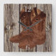 Reloj Cuadrado Foto de los boots rústicos, de madera y vaqueros