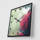 Un reloj con una hermosa fotografía. Un día nebuloso con sinuosas vías férreas y un hermoso follaje y un magnífico árbol rojo. Una imagen muy pintoresca y divertida.