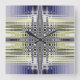 Arte fractal abstracto simétrico que me recuerda a ilusiones ópticas. Este reloj cuadrado único cuenta con círculos y olas en blanco, azul y caqui. ¡Sin números!