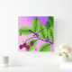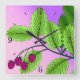 Frambuesas maduras en una rama de hojas verdes primaverales contra un fondo del cielo suave, subió al lilo, amanecer
