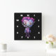 Un reloj con un lindo ilustracion. Monstruo Frankenstein con pelo rosado y púrpura y traje y corbata de dapper.