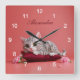 Reloj Cuadrado Gato de enero lindo con claveles